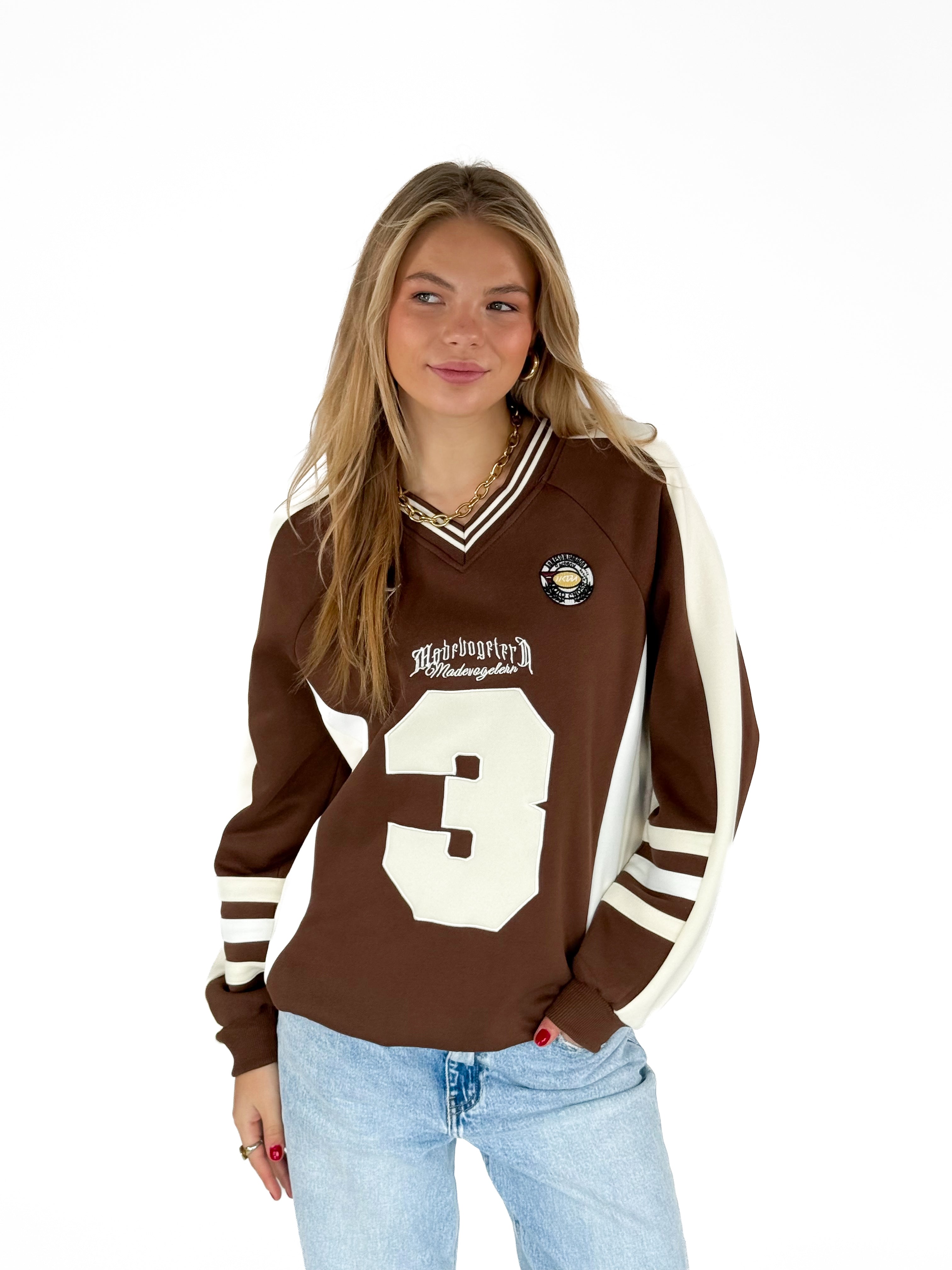 De Beau sweater is een super comfortabele trui met een leuke print aan de voorkant. De trui heeft een V-hals en een grote '3' op de voorkant van de trui. De achterkant bevat niks. 💌