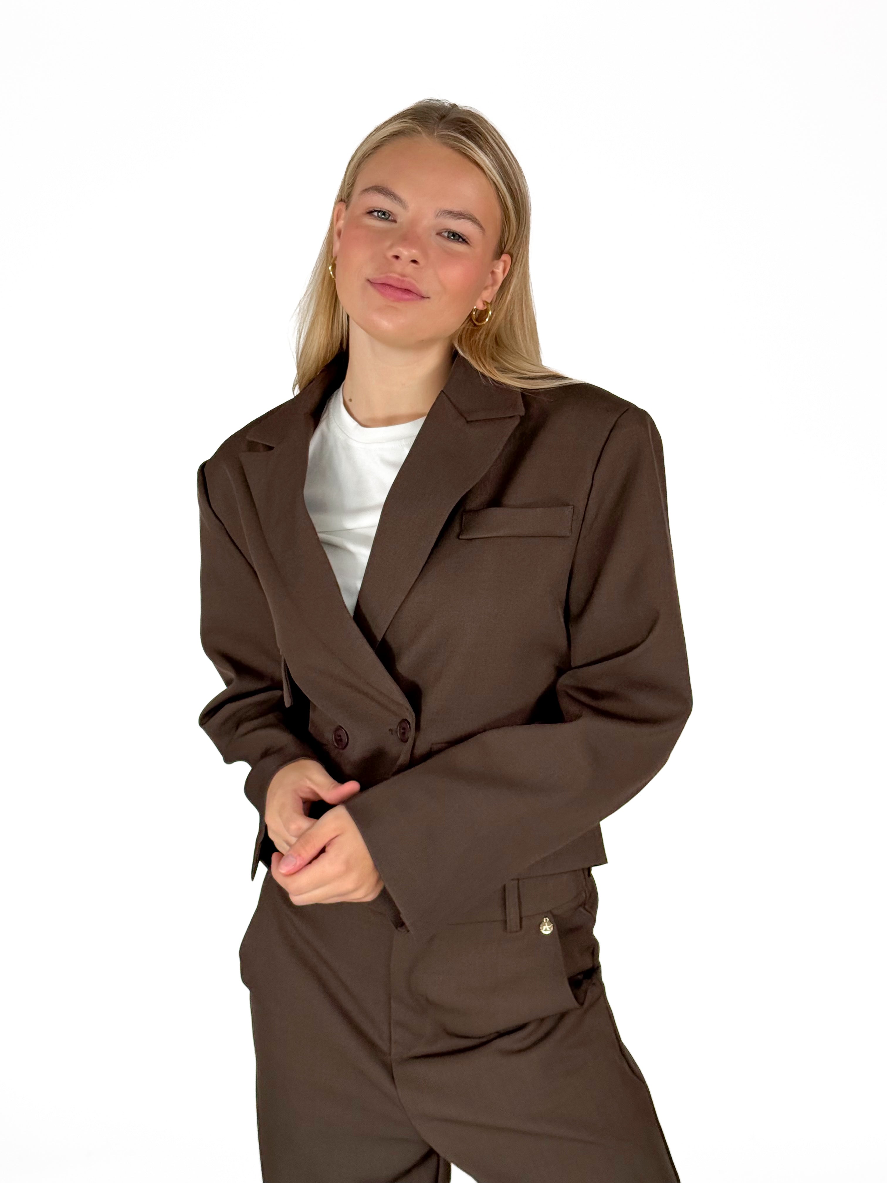 Nog opzoek naar de perfecte cropped blazer? Dan is de Donna blazer perfect voor elke gelegenheid. De Donna blazer is een cropped blazer met knopen, zakken en schoudervulling. Superleuk om te dragen met de bijpassende Donna pantalon!