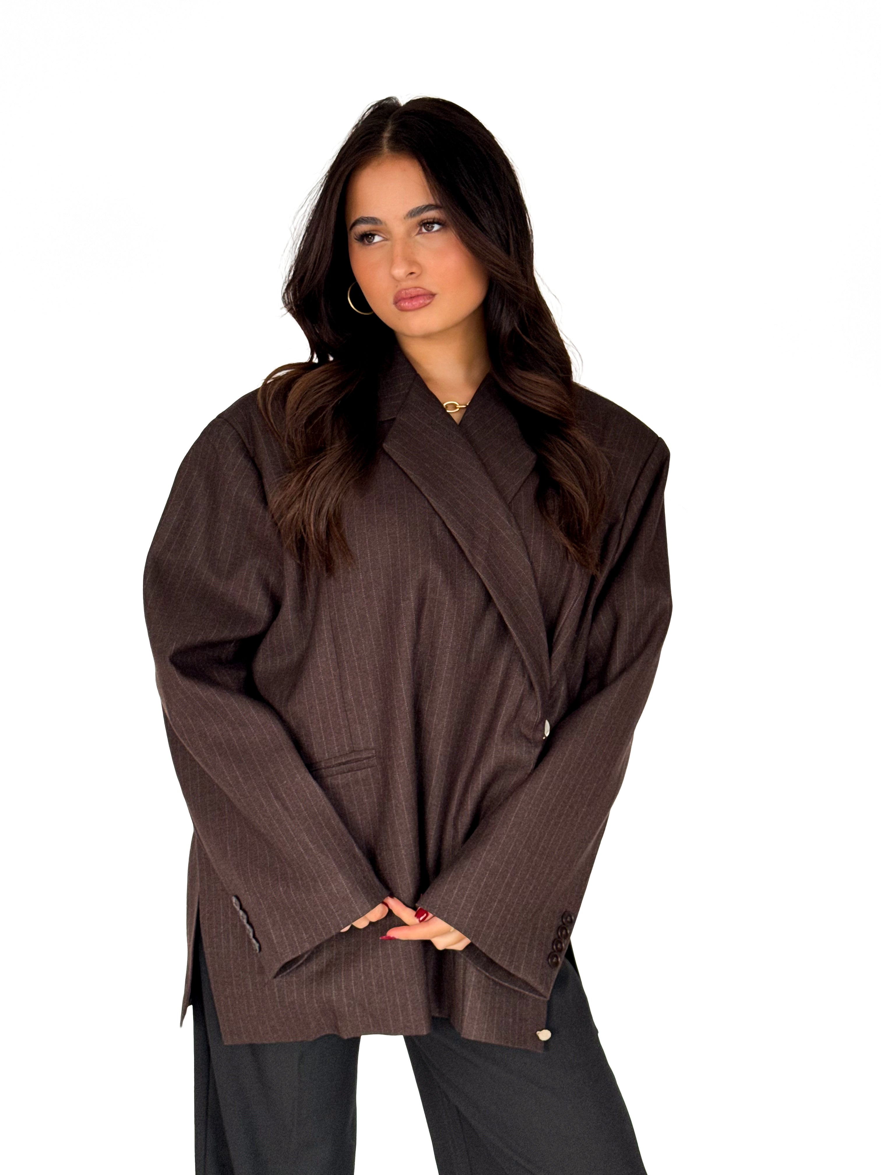 The perfect boxy blazer! De Jazzy blazer is de perfecte boxy blazer voor deze herfst! De blazer heeft een licht lijntjespatroon, splitjes aan de zijkant, schoudervulling en sluit met een knoop aan de zijkant.