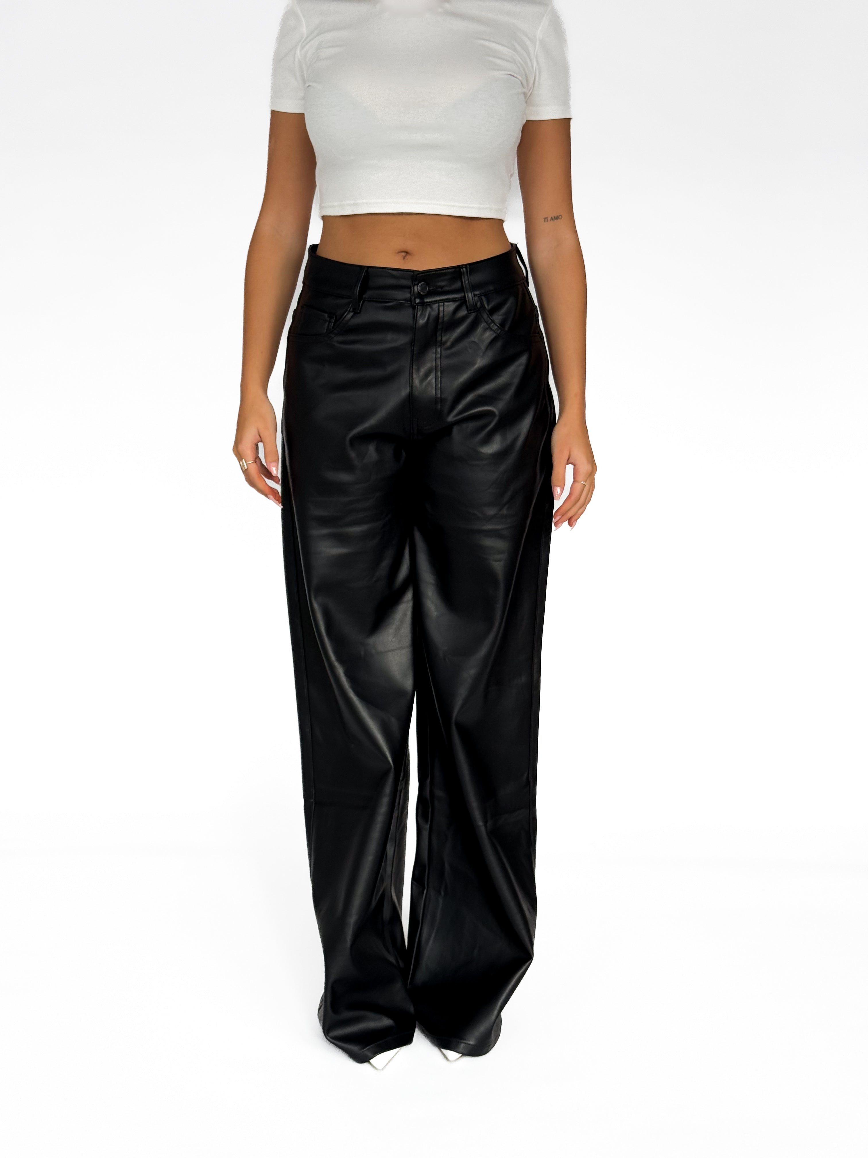 Ben je nog opzoek naar de perfecte leren broek voor deze herfst? Dan is de Lara pants de perfecte leatherlook broek voor jou! De broek heeft een wide leg fit, bevat zakken en sluit met een rits. ✨