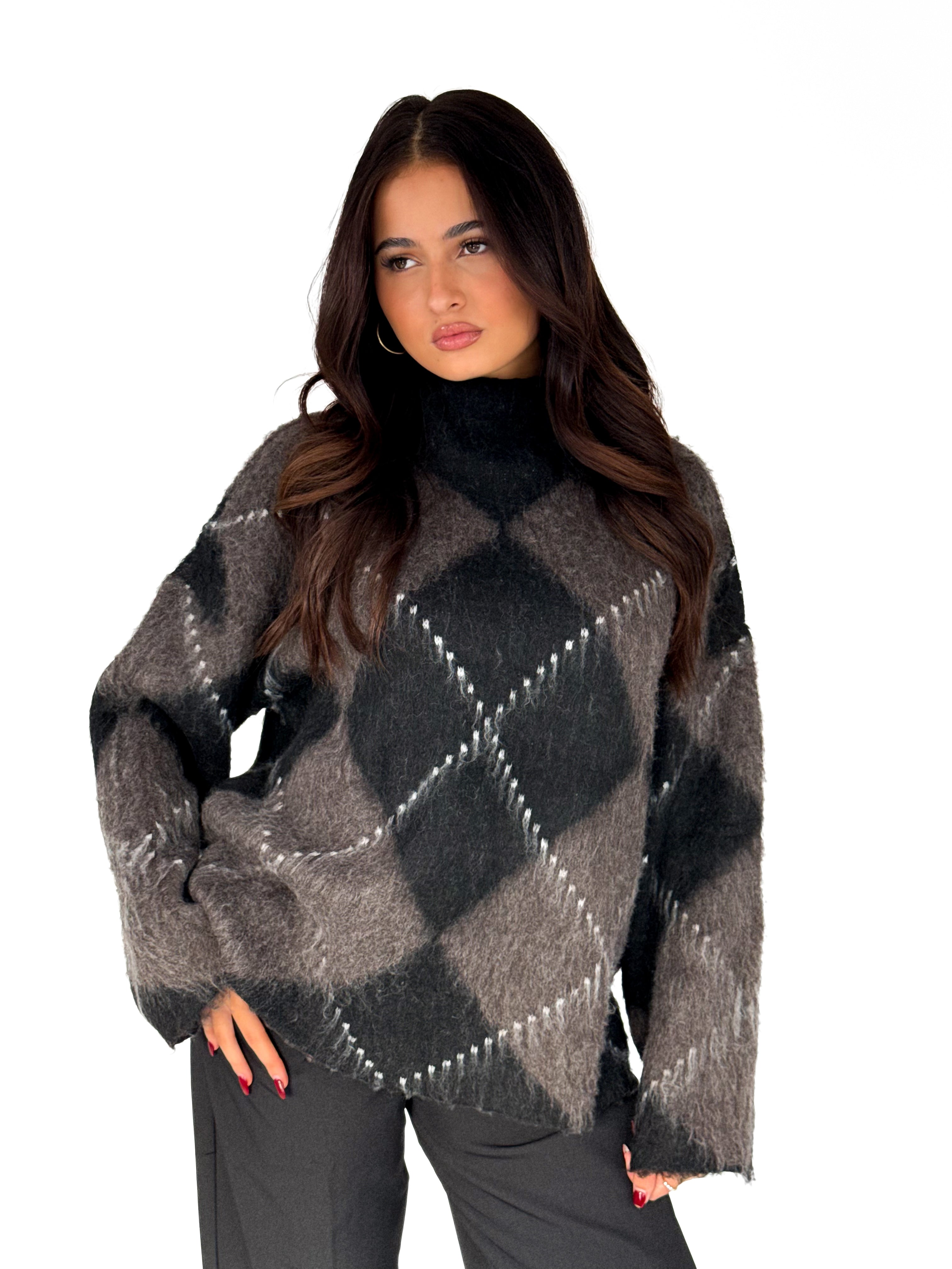 The perfect fall knit! De Mila knit is een heerlijk dikke koltrui met een heel leuk ruitenpatroon. De knit is super zacht! Ook kan je het kolletje naar binnen omslaan.💌