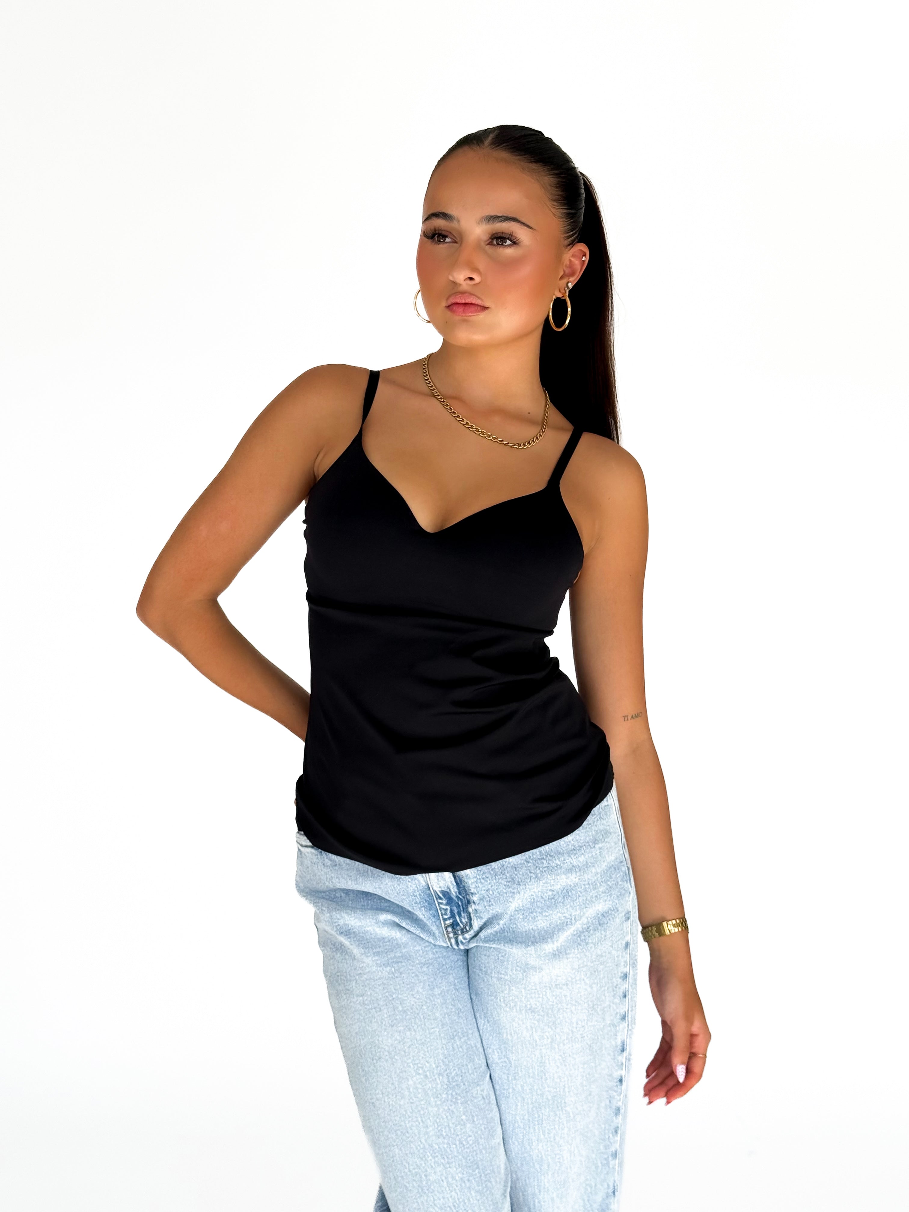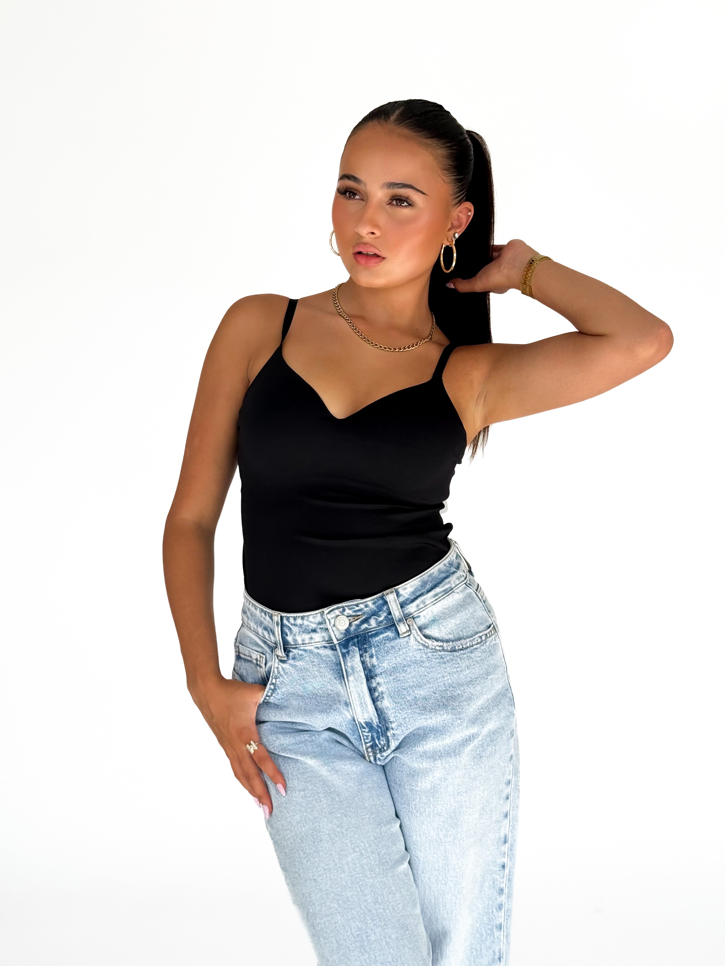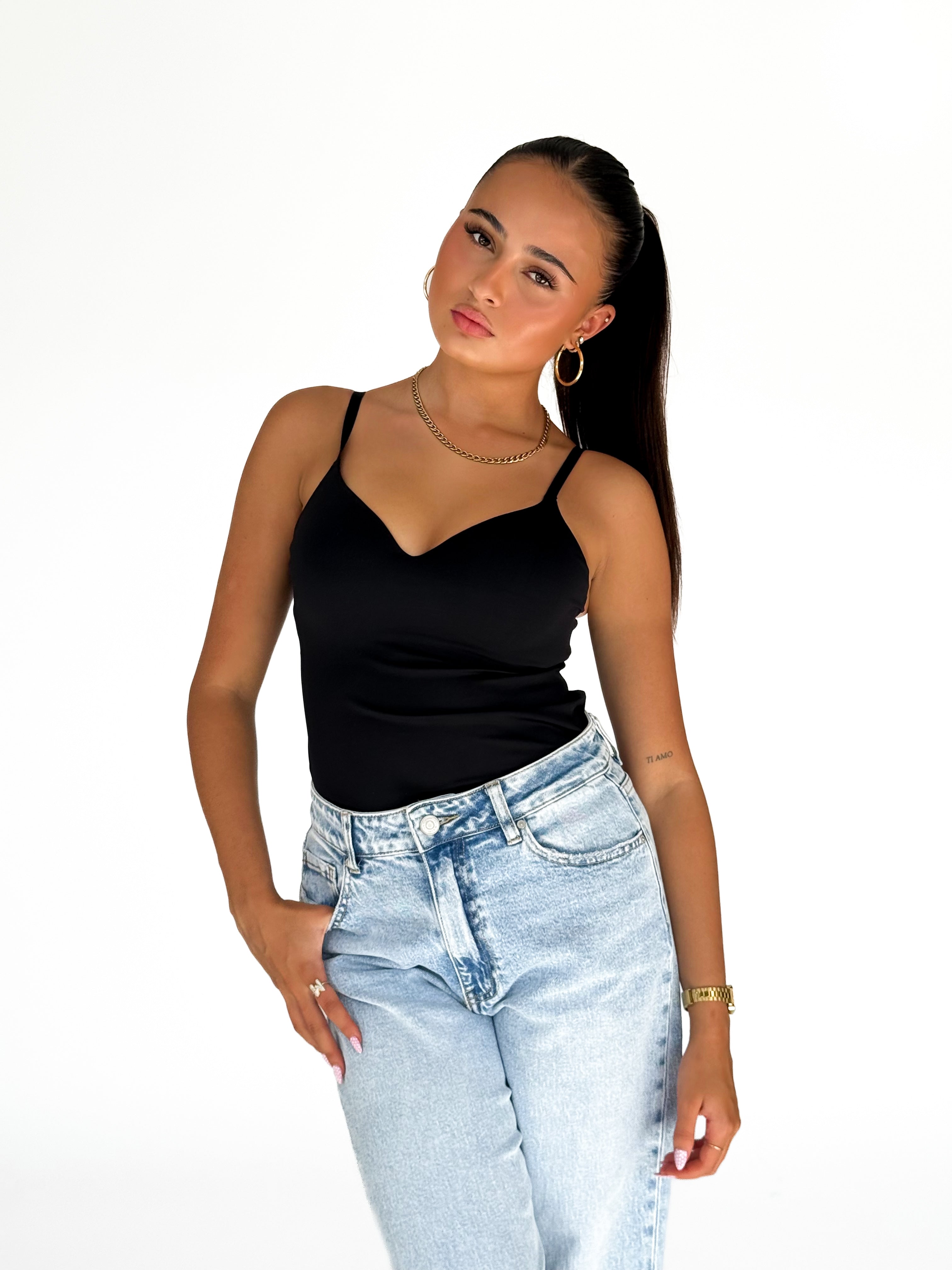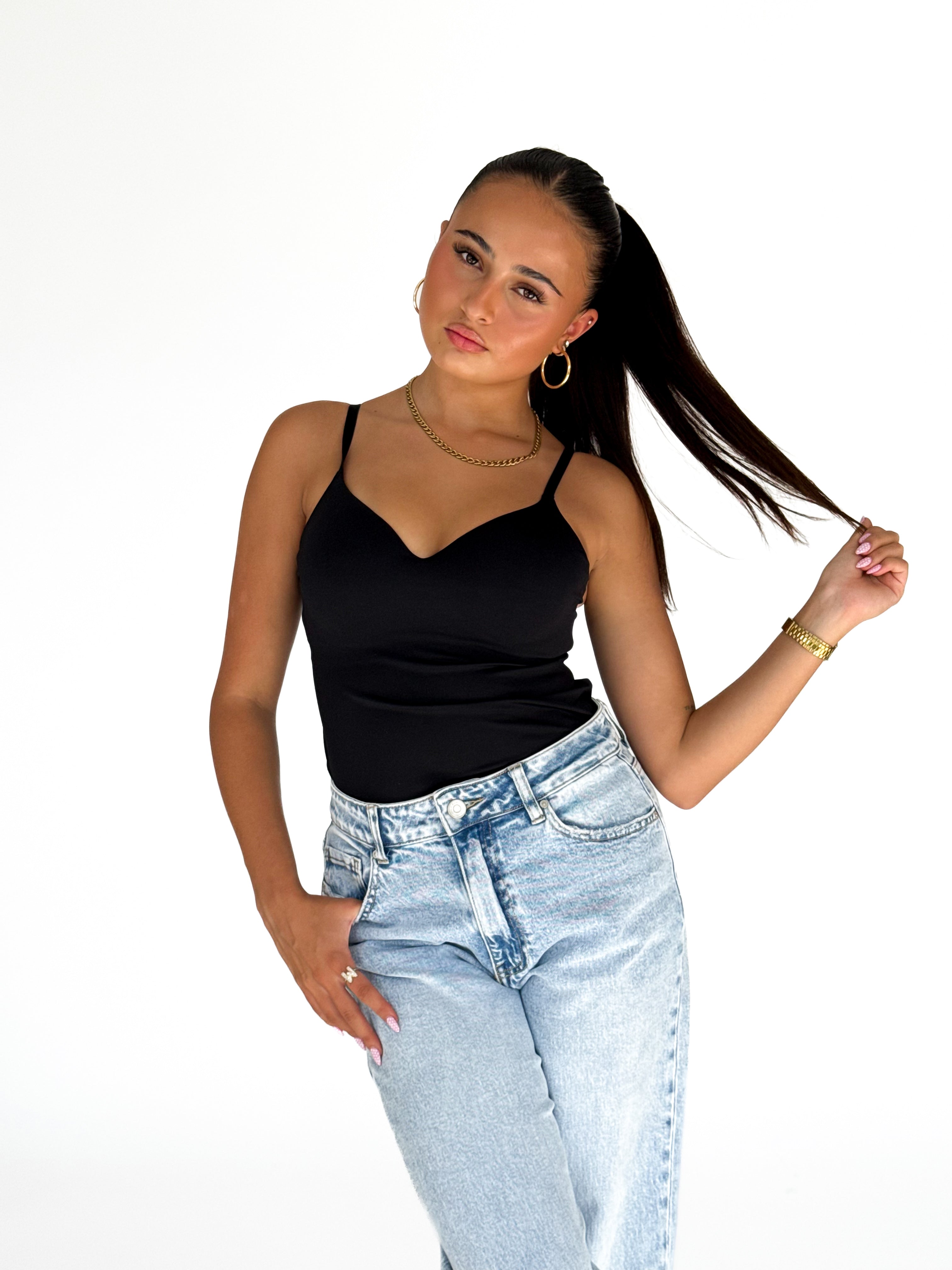 Hoe flatterend is deze top?! De Nicky top is een is een super mooie flatterende top. De top bevat ingebouwde cups, waardoor je geen bh onder de top hoeft te dragen, ideaal dus! Ook heeft de body verstelbare schouderbandjes.