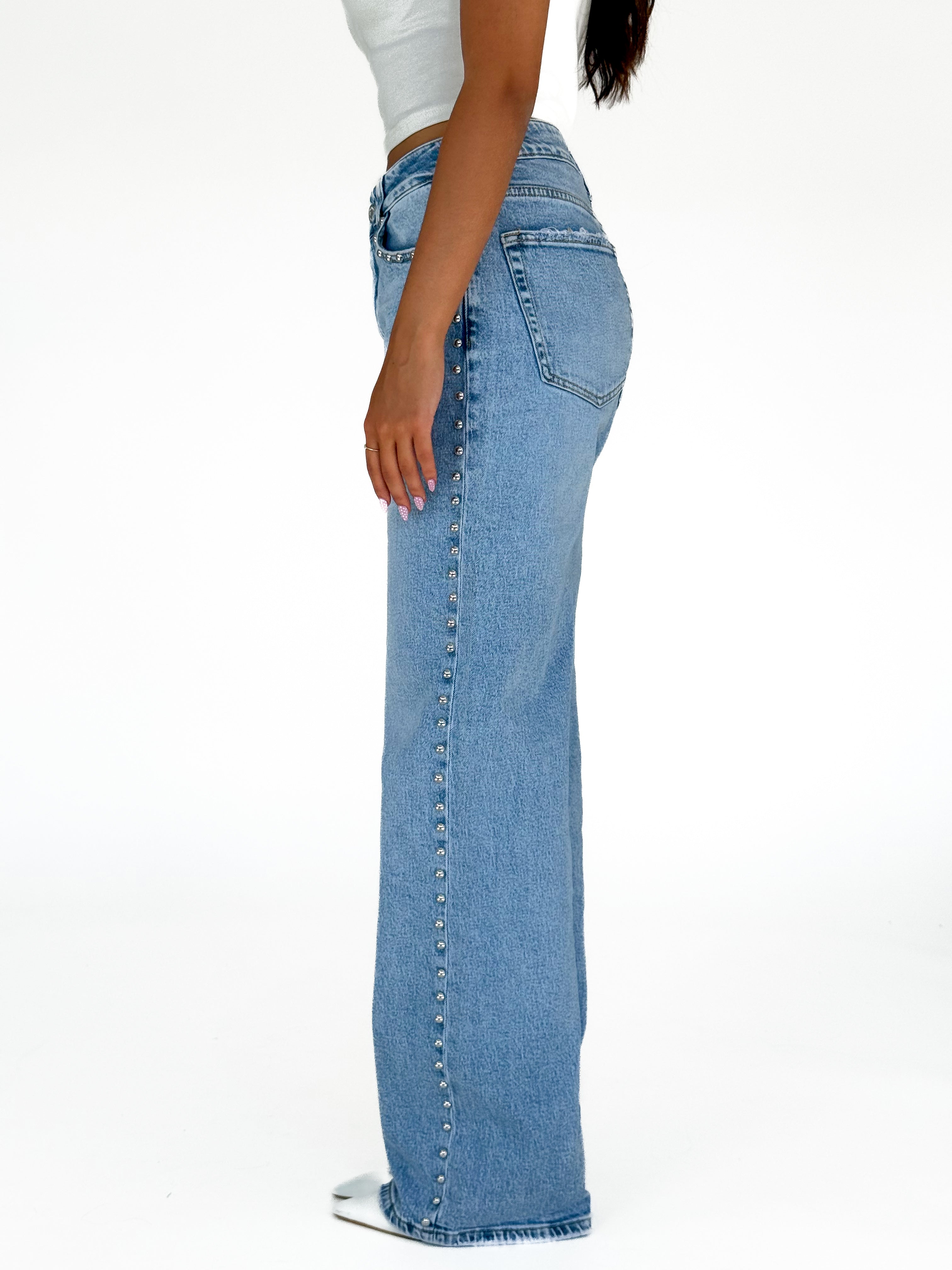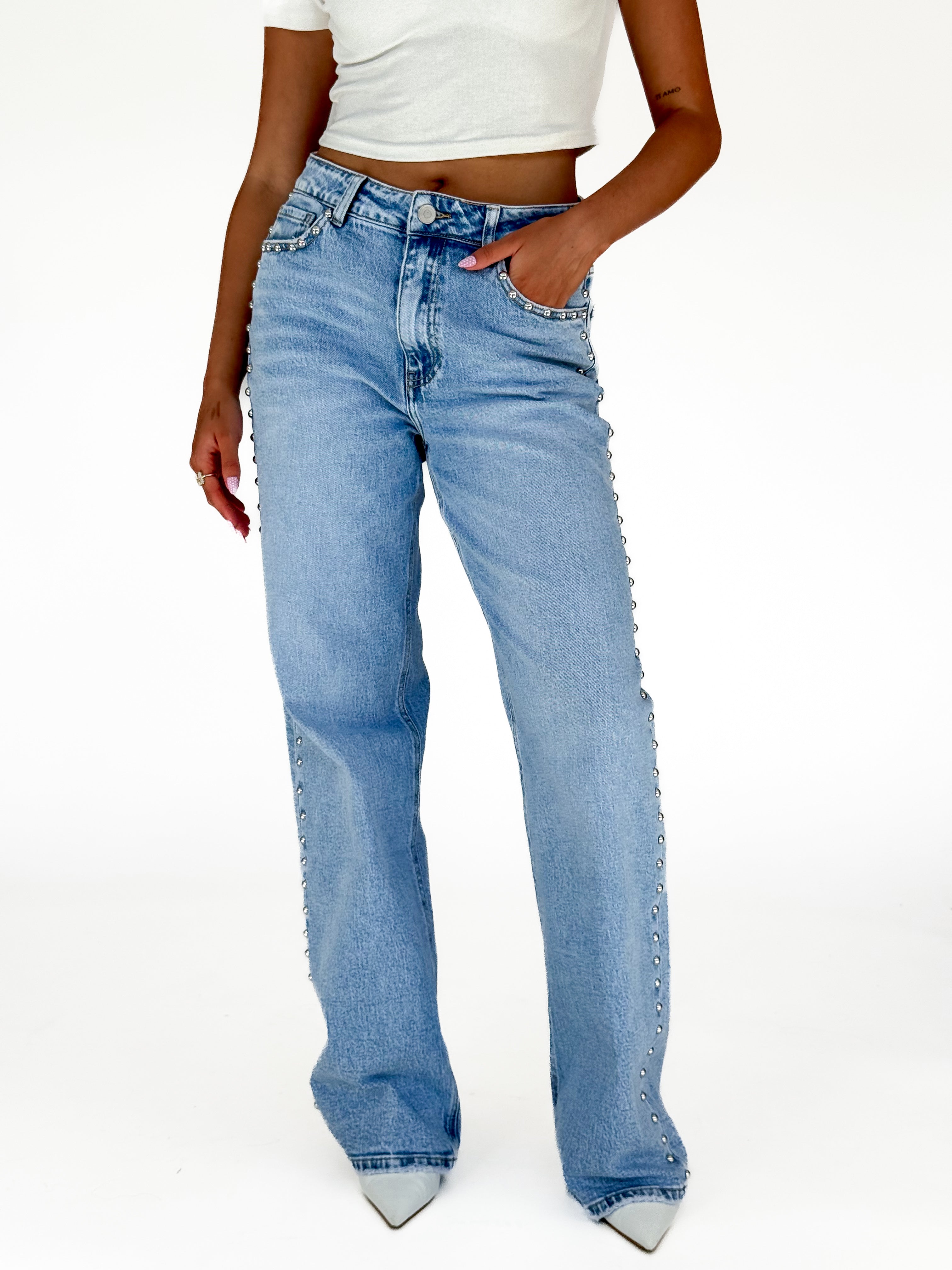 De Chiara wide jeans is dé perfecte wijde jeans met stretch die je in je kast wilt hebben: stretchy, trendy en comfy. De Chiara wide jeans is een jeans met een hoge waist, heeft een anthracite wassing, wijde pijpen. Dankzij de stretch zit hij super comfortabel en sluit hij mooi aan. Ook bevat de jeans studs aan de zijkant en bovenkant van de broek. ✨👖.