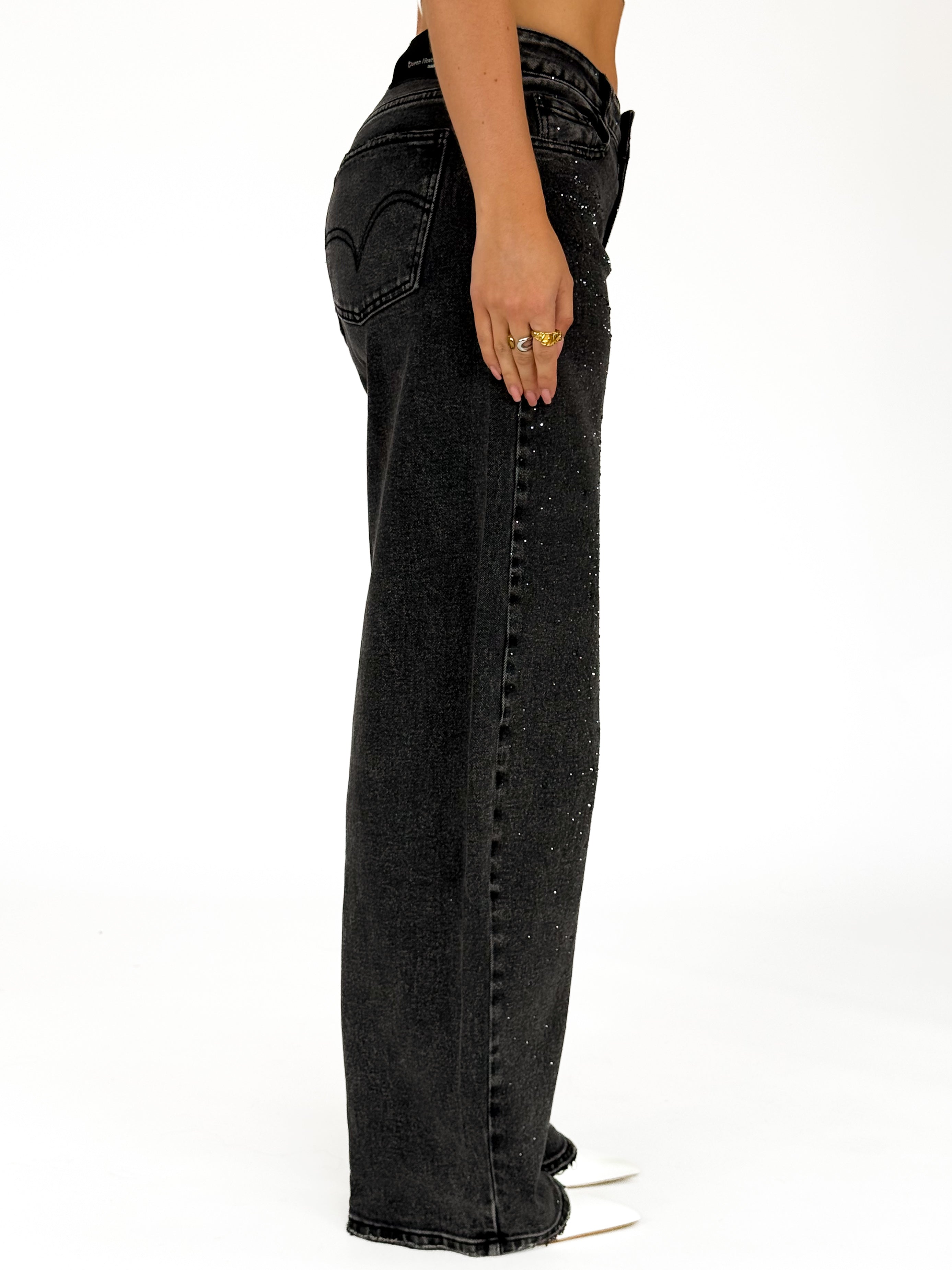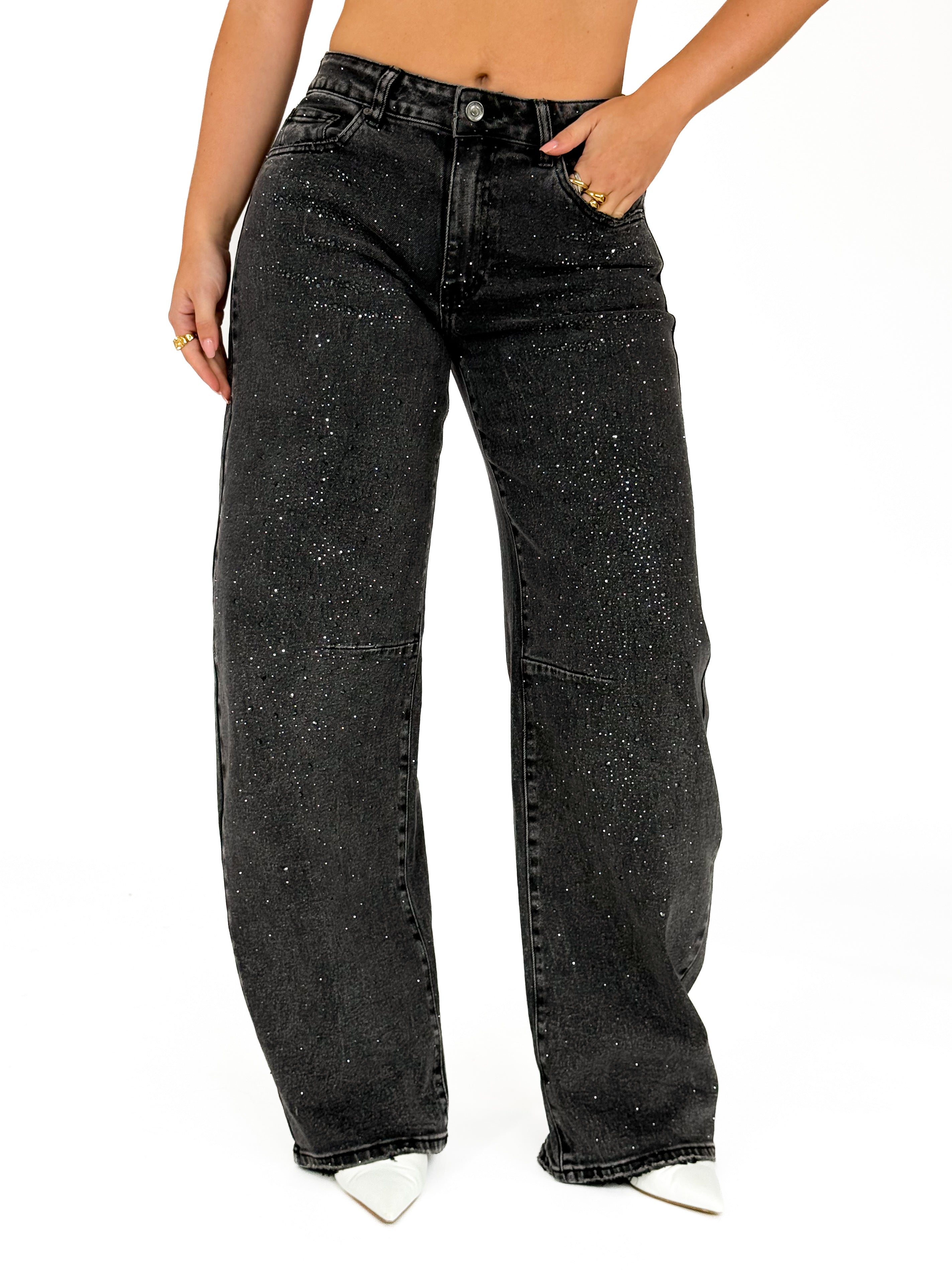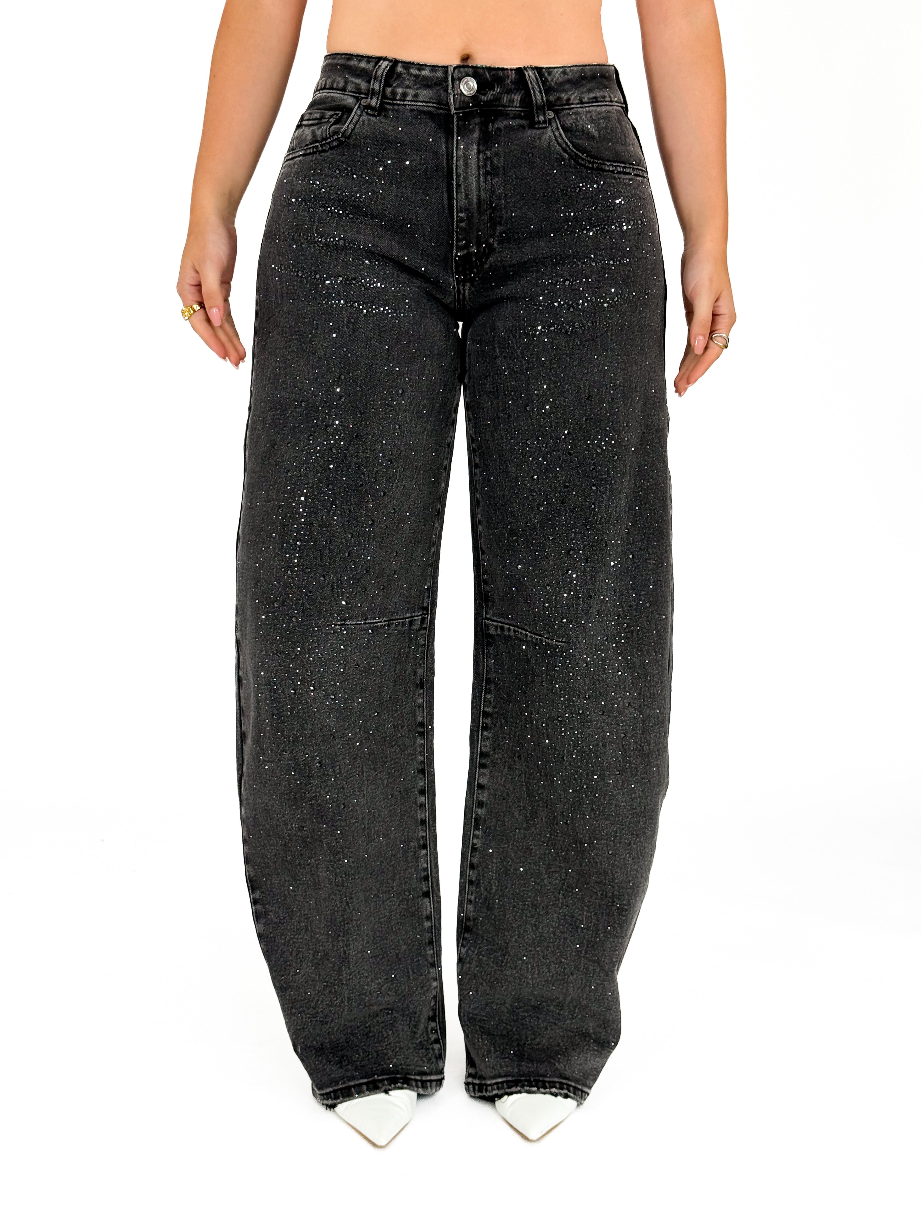 TRENDALERT! ✨👖. Balloon jeans zijn DE trend van nu. De Isablle balloon jeans is dé perfecte balloon jeans met stretch en glitter die je in je kast wilt hebben: stretchy, cute en comfy. De Isabelle balloon jeans is mid waist, heeft een donker grijze wassing, ronde pijpen, en speelse distressed details. Ook bevat de jeans een super leuk glitterpatroon aan de voorkant van de jeans. Dankzij de stretch zit hij super comfortabel en sluit hij mooi aan.