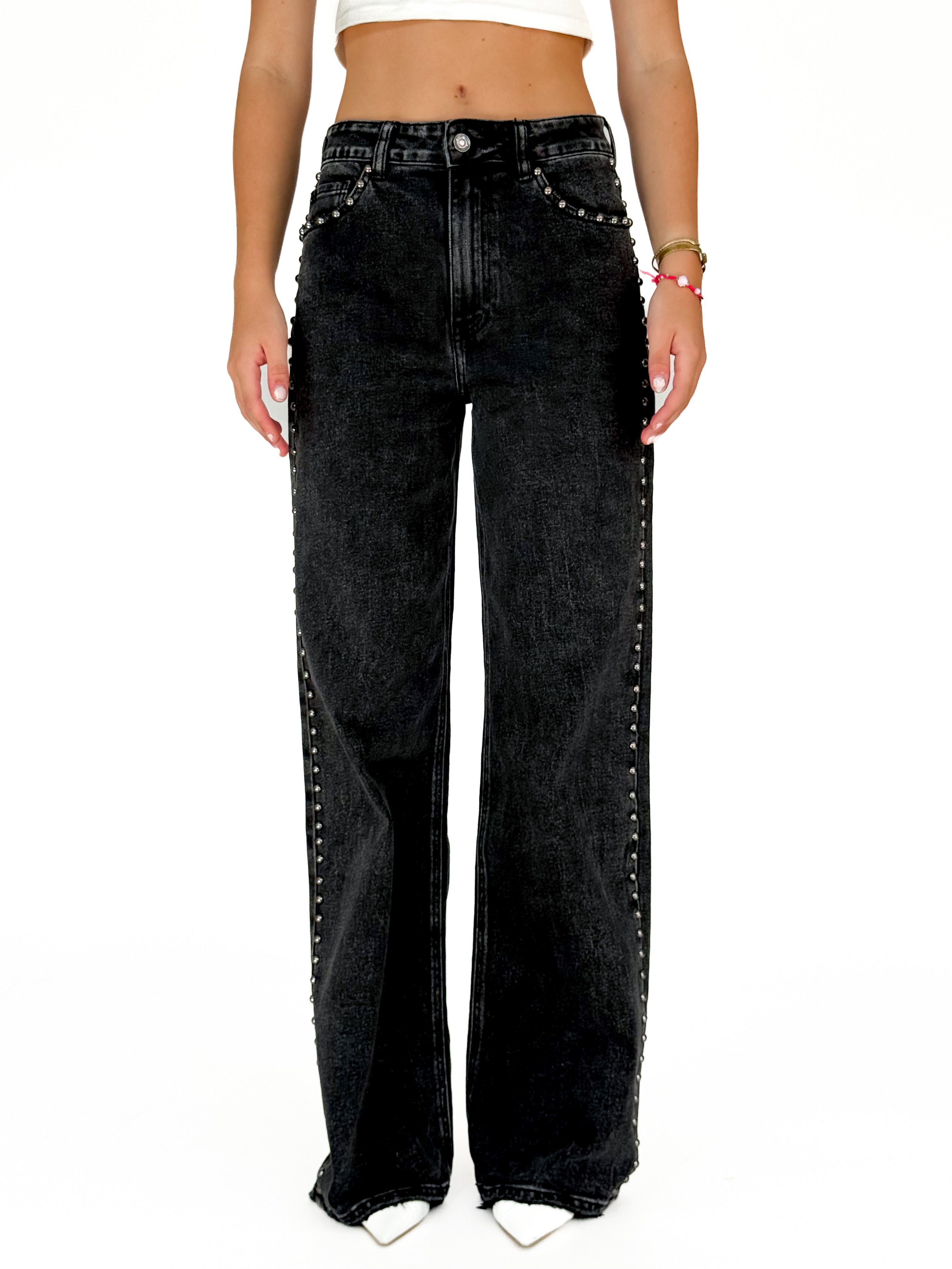 Tall girls opgelet!✨👖. De Chiara wide jeans is dé perfecte tall wijde jeans met stretch die je in je kast wilt hebben: stretchy, trendy en comfy. De Chiara wide jeans is een jeans met een hoge waist, heeft een anthracite wassing, wijde pijpen. Dankzij de stretch zit hij super comfortabel en sluit hij mooi aan. Ook bevat de jeans studs aan de zijkant en bovenkant van de broek.